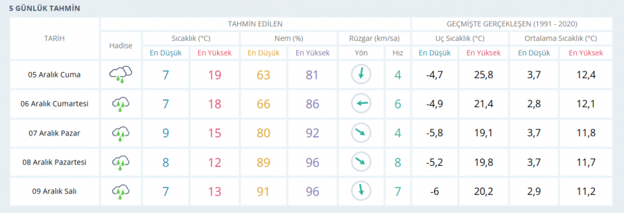 5 Aralık Cuma: Cuma günü Bursa'da yağışlar tekrar başlıyor. Sıcaklıklar ise 19 dereceye kadar yükseliyor.