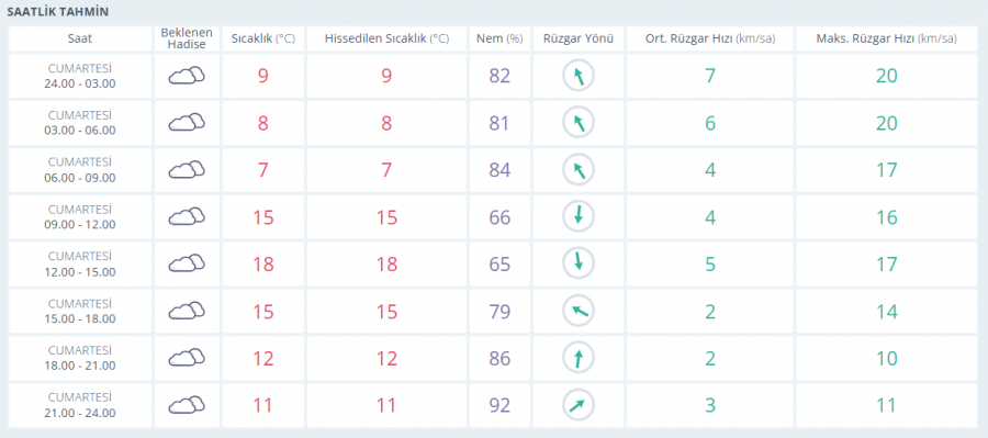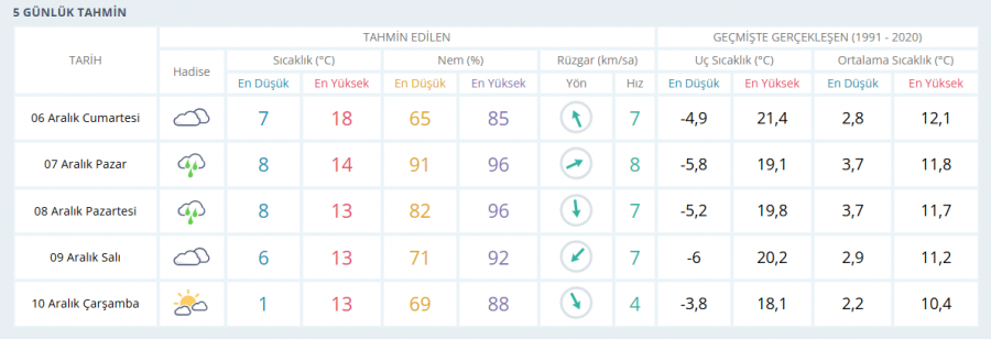 6 Aralık Cumartesi: Cumartesi günü Bursa'da kapalı ve bulutlu bir hava olacak. Sıcaklık ise 18 derece seviyesinde.