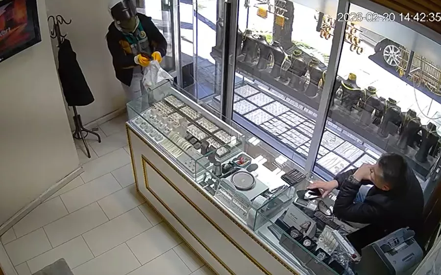 Bursa Bölge, 2026.02.22 15:59Bursa'nın Yenişehir ilçesinde kuyumcuya yönelik silahlı soygun girişimine ilişkin güvenlik kamerası görüntüleri ortaya çıktı.