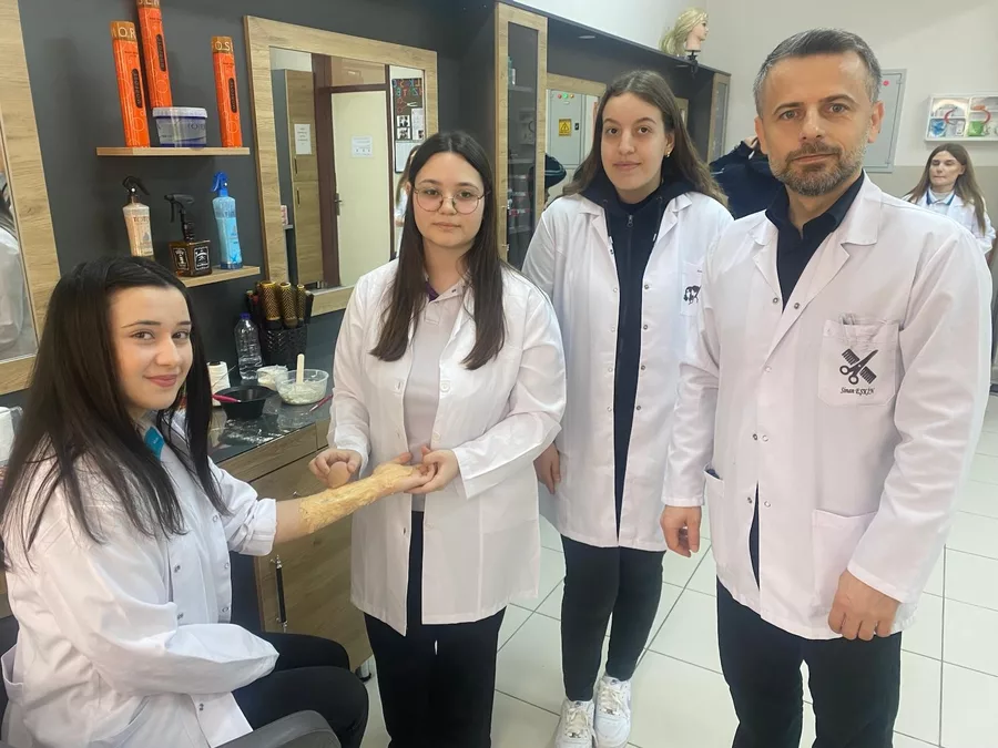 Okulun Güzellik Hizmetleri Öğretmeni Sinan Eşkin, öğrencilerin dört yıllık yoğun bir eğitimden geçtiğini belirterek, "Filmlerde görmüş olduğunuz yaralı sahneler, çekim öncesinde bu şekilde hazırlanıyor. Öğrencilerimiz burada aldıkları eğitimle mezun olduktan sonra bu alanlarda rahatlıkla iş bulabiliyor. Makyaj, saç, cilt bakımı ve epilasyon gibi birçok alanda kendilerini yetiştirip iş hayatına atılıyorlar. İnsana odaklı bir iş yaptıkları için istihdam konusunda sıkıntı yaşamıyorlar" dedi.