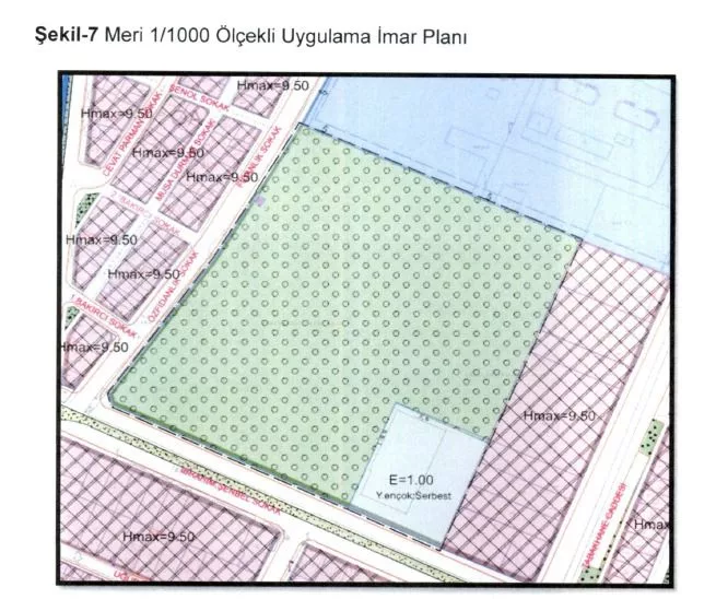 Mimarlar Odası'nın yaptığı incelemede, plan açıklama raporunda söz konusu parsel için yapılaşma koşullarının Emsal (E)=0.20 ve Yençok=9.50 metre olarak belirlendiği ifade edildi.