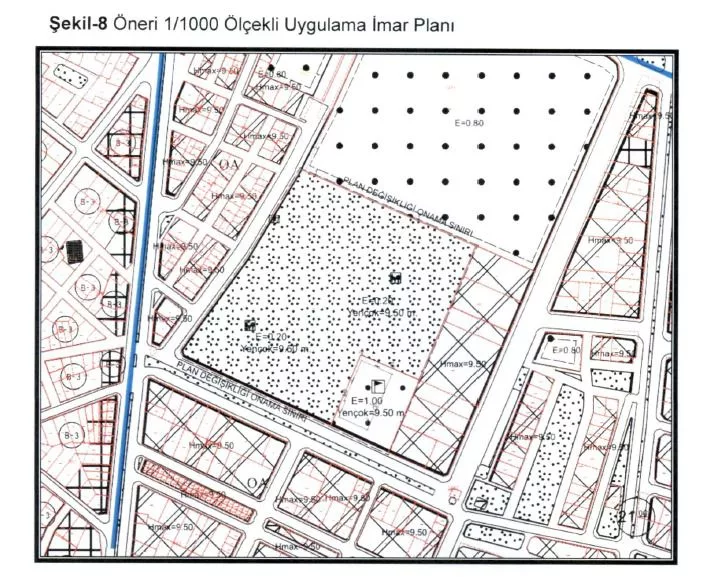E=0.20 ve 9.50 metre yükseklik verilmesinin, yönetmelikte öngörülen sınırlı yapılaşma ilkesine aykırılık oluşturduğu belirtilerek, plan değişikliğinin imar mevzuatına, şehircilik ilkelerine, planlama esaslarına ve kamu yararına uygun olmadığı ifade edildi.