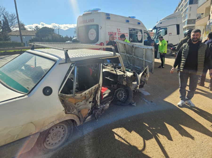 Çarpmanın etkisiyle metrelerce sürüklenen otomobil adeta hurdaya döndü.