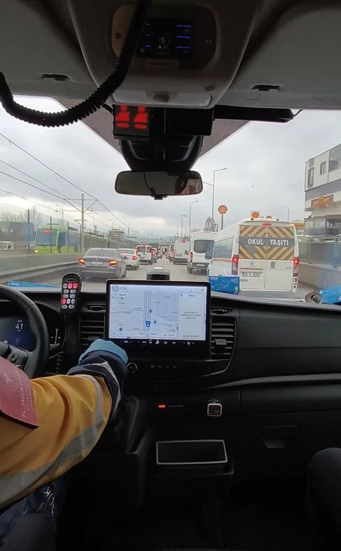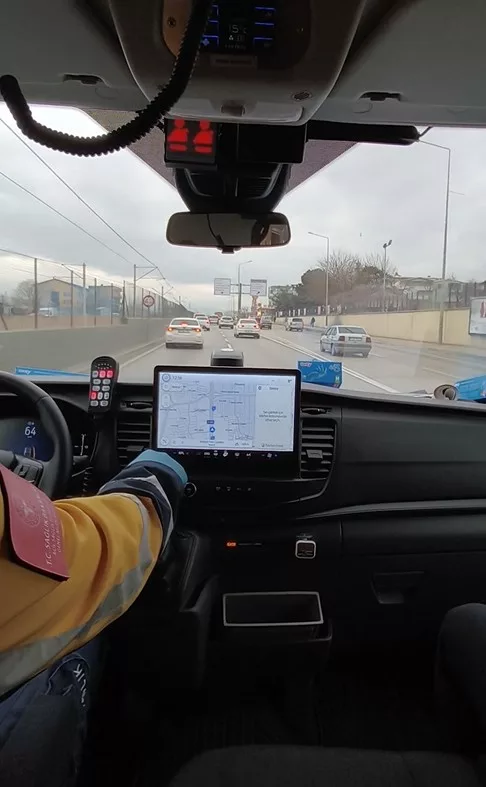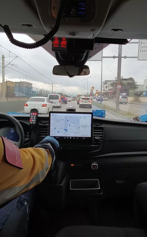 Sürücülerin fermuar sistemini nizami şekilde uygulaması sayesinde ambulans, vakit kaybetmeden ilerleyişini sürdürürken, oluşturulan 'hayat koridoru' cep telefonu kamerasıyla görüntülendi.
