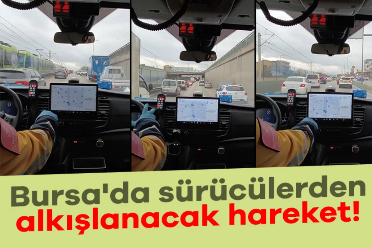 Osmangazi ilçesi Ankara Yolu üzerindeki yoğun trafikte, ambulansın sirenini duyan sürücüler, sağduyulu davranarak araçlarını uygun şekilde konumlandırdı.