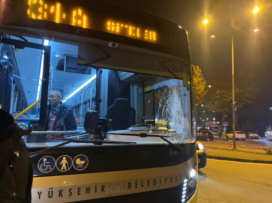 Bursa Bölge, 2025.12.12 23:46Bursa'nın Osmangazi ilçesi Etibank Caddesi'nde belediye otobüsü ile bir sivil araç arasında akşam saatlerinde trafik kazası meydana geldi. Kaza sonrası sivil araç sürücüsü ile belediye otobüsü şoförü arasında tartışma çıktı. Tartışmanın büyümesi üzerine sivil sürücü, tehditler savurarak belediye otobüsünün ön camını yumruklayıp kırdı.