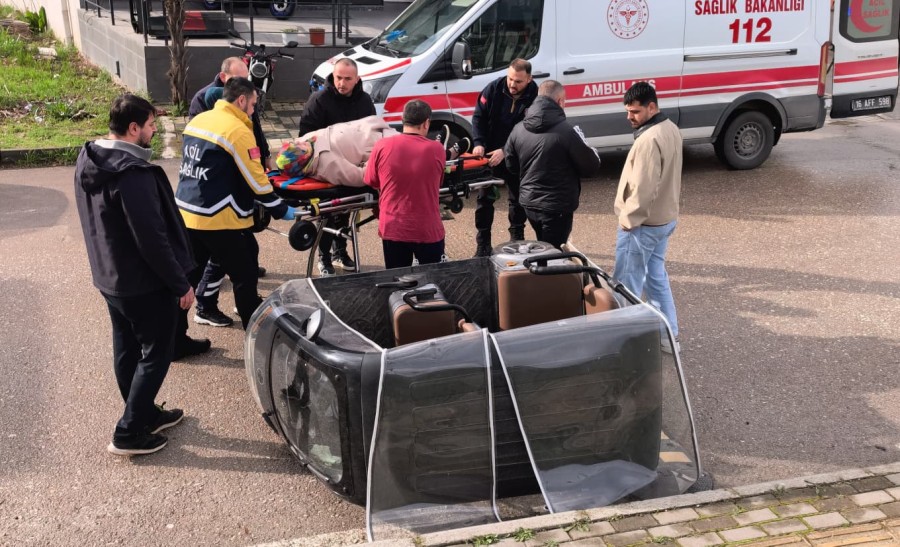Sıkışan sürücü yaralanırken, ihbarla kaza yerine sağlık ekipleri sevk edildi. Sağlık personeli ve çevredekilerin yardımıyla triportörden çıkarılan Şerife Ç., ambulansla İnegöl Devlet Hastanesi'ne kaldırıldı.