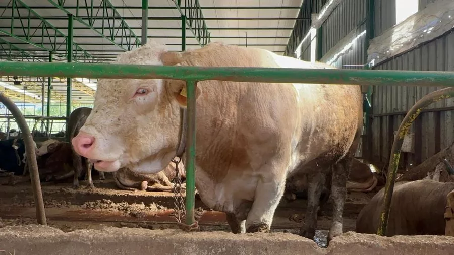 İlçeye bağlı Ürünlü Mahallesi'nde hayvancılık yapan İsmail Oktay, çiftliğin en büyük hayvanını yaklaşık 400 bin liraya satarak müşterilerinin alım gücüne destek olmayı hedeflediklerini belirtti. Kurban Bayramı'nın yaklaşmasıyla hareketlenen pazarlarda, özellikle bir ton ve üzeri ağırlığa sahip kurbanlıklar için talep edilen yüksek rakamlar tüketicilerin tepkisini çekerken, Bursalı besiciden örnek bir yaklaşım geldi. Simental ve şarole melezi olan dev boğa, 7 ortak tarafından satın alındı.