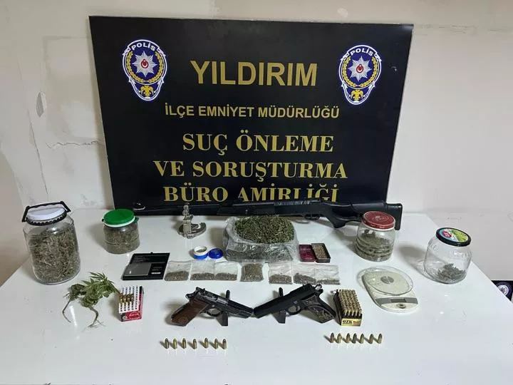 Yıldırım İlçe Emniyet Müdürlüğü ekipleri, bir ikamette uyuşturucu madde ticareti yapıldığı ve ruhsatsız silah ile mühimmat bulundurulduğu yönündeki istihbarat üzerine harekete geçti. Yapılan teknik ve fiziki takibin ardından şüphelinin adresine operasyon düzenlendi.