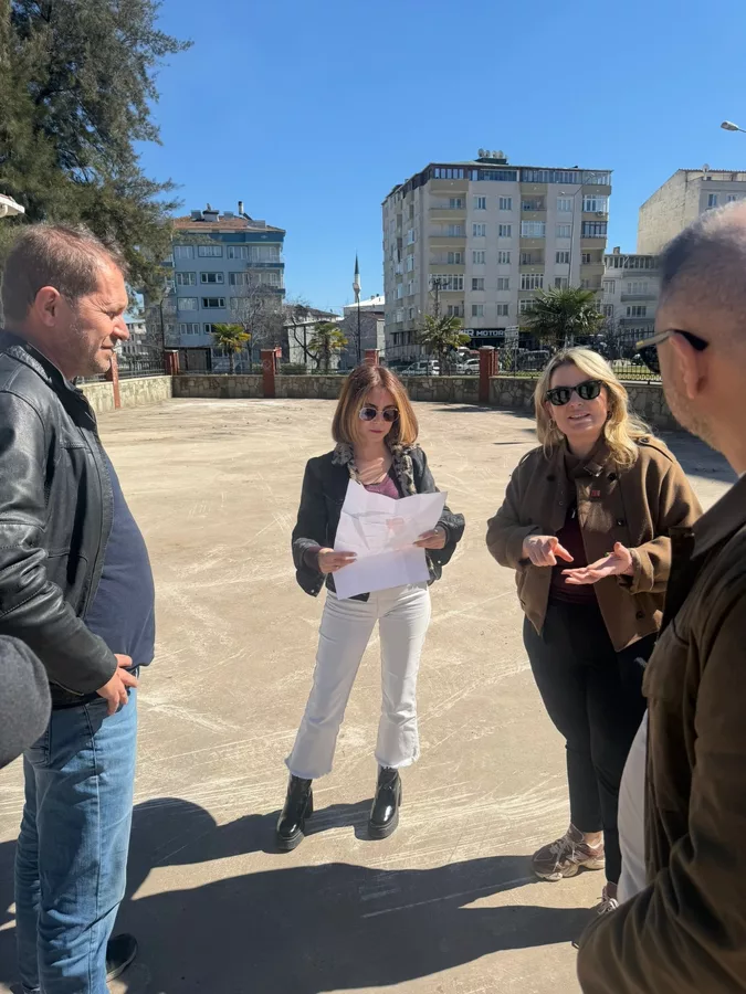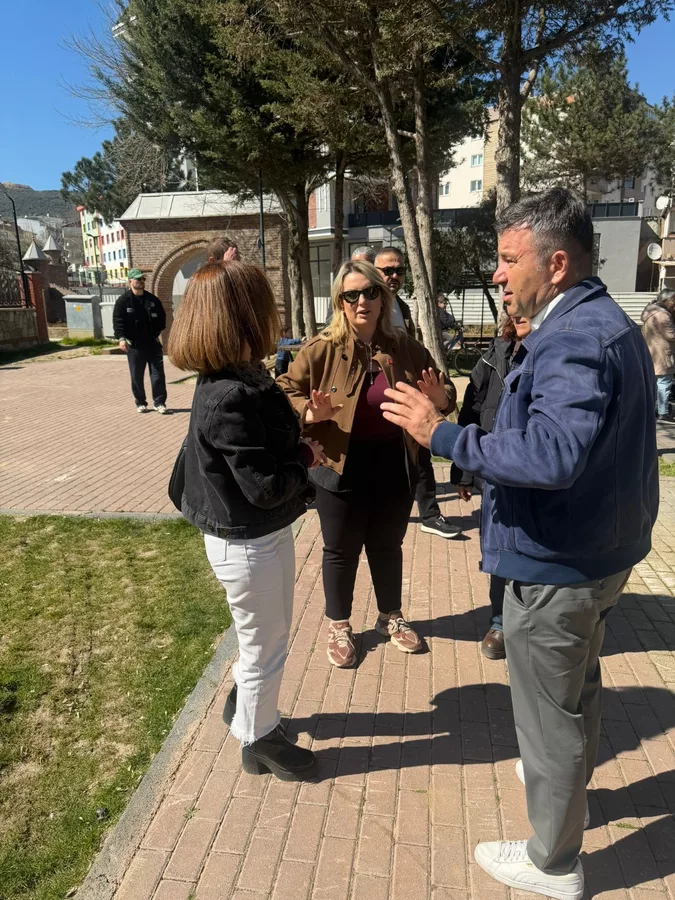 Cumhuriyet Halk Partisi Orhangazi İlçe Başkanı Berna İl, Bursa Büyükşehir Belediyesi Park ve Bahçeler Daire Başkanı Hakan Tanrıöver ve Kent Estetiği Müdürü Bahriye Bahar ile birlikte park alanında incelemelerde bulundu.