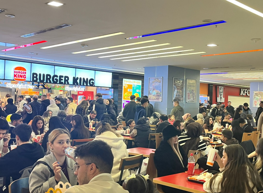 Bursa'nın en çok tercih edilen alışveriş merkezlerinden birinde pazar günü yaşanan yoğunluk, özellikle yemek katında dikkat çekti. Hafta sonunu değerlendirmek isteyen vatandaşların akınına uğrayan AVM'de, oturacak yer bulmak neredeyse imkansız hale geldi.
