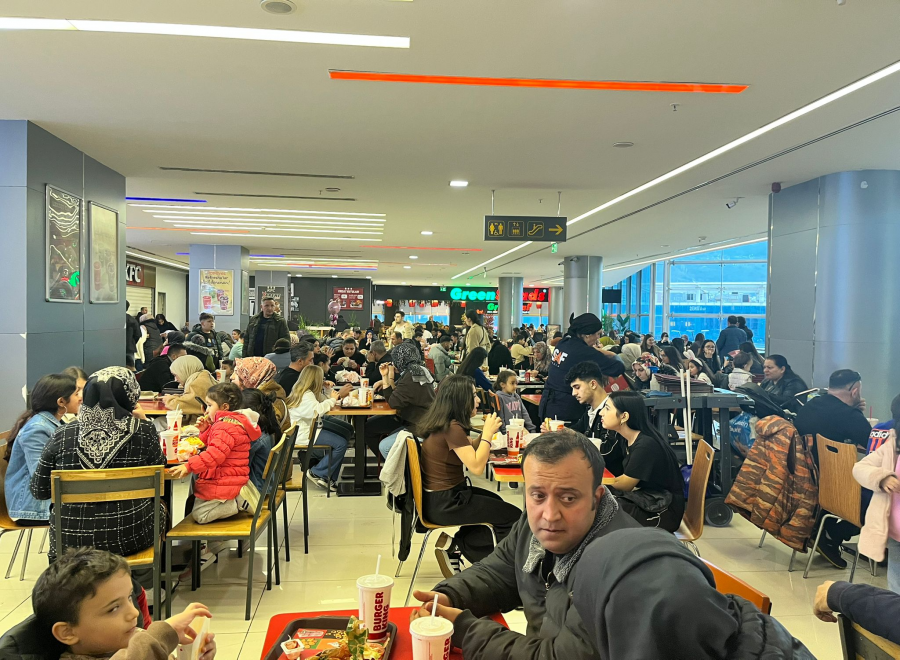 Yoğunluğun en fazla hissedildiği alan yemek katı olurken, birçok vatandaş yemek tepsileri ellerinde masaların boşalmasını bekledi.