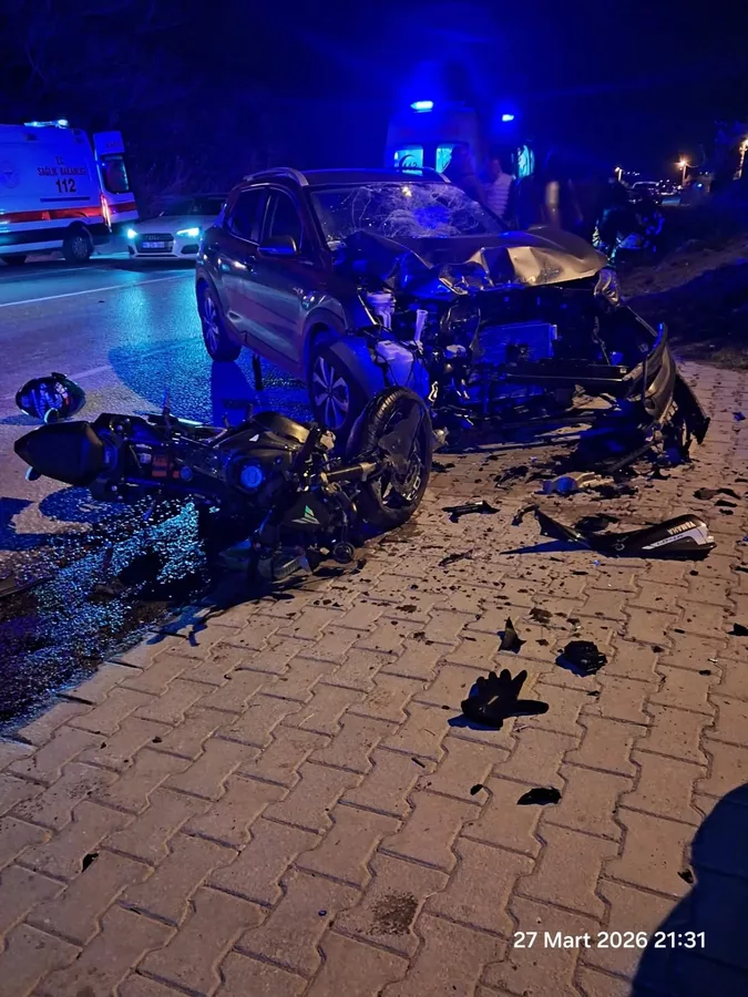 Edinilen bilgilere göre; karşı istikametlerden gelen motosiklet ve otomobil, araçlardan birinin şerit değiştirmesi sonucu kafa kafaya çarpıştı.