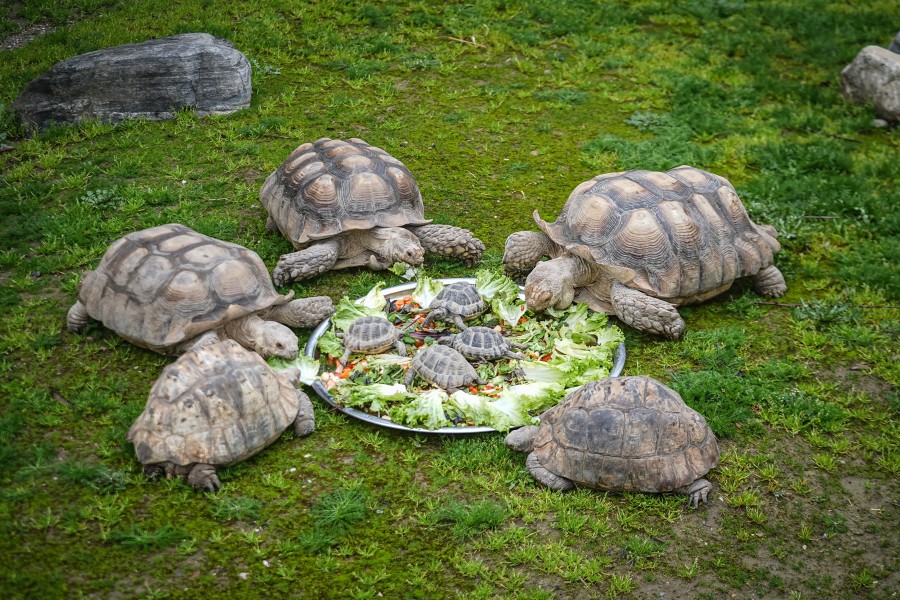 "Toplam 15 kaplumbağamız var. 9'u yetişkin, 6'sı yavru. Kavun, karpuz, elma, marul ve havuç gibi besinlerle dengeli bir öğün hazırlıyoruz. Sıcak iklim hayvanları oldukları için kışın dışarı çıkarmıyoruz. Bakımlarını genellikle kapalı alanlarda yapıyoruz, yalnızca güneşli günlerde kontrollü olarak dış mekana çıkarıyoruz."