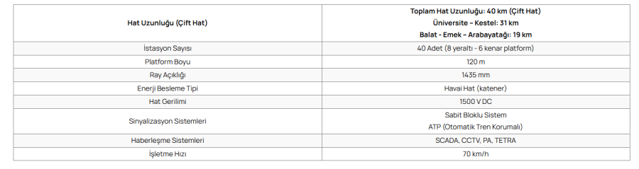 Üniversite-Kestel hattı yaklaşık 31 kilometre, Balat-Emek-Arabayatığı hattı ise yaklaşık 19 kilometre uzunluğunda hizmet veriyor. Sistem genelinde toplam 40 istasyon bulunuyor.