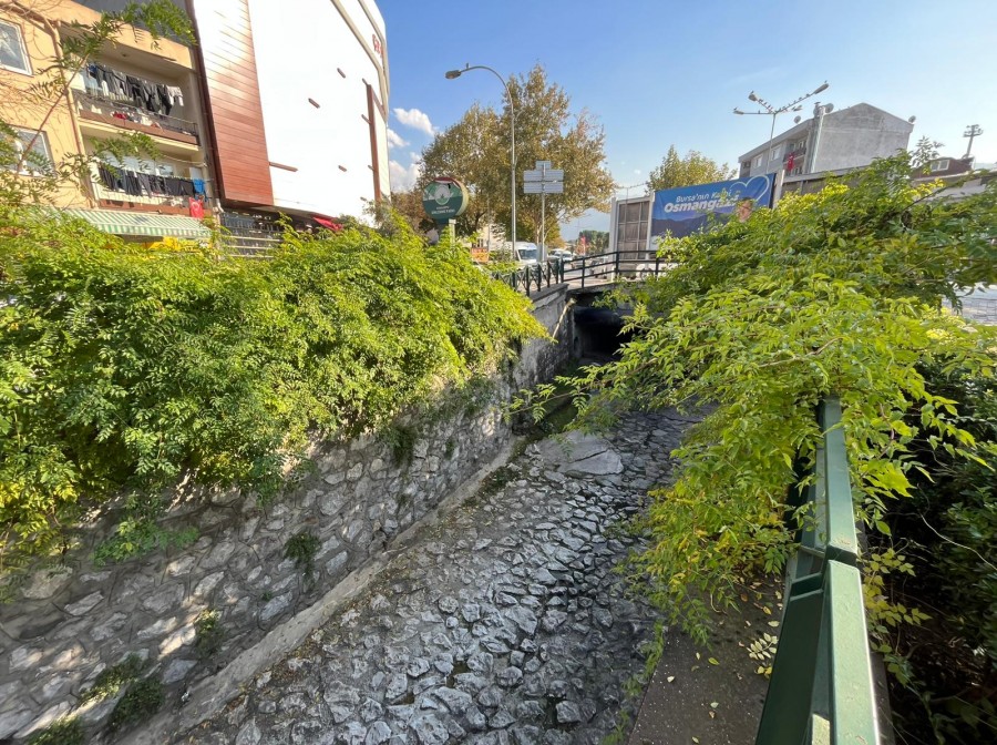 Bursa'nın Osmangazi ilçesinde bulunan Kanalboyu Deresi, yaşanan su krizi nedeniyle kuruyunca istenmeyen bir manzara ortaya çıktı.