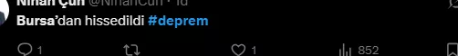 Kısa süreli paniğe neden olan sarsıntının ardından birçok kişi yaşadıklarını sosyal medyada paylaştı.