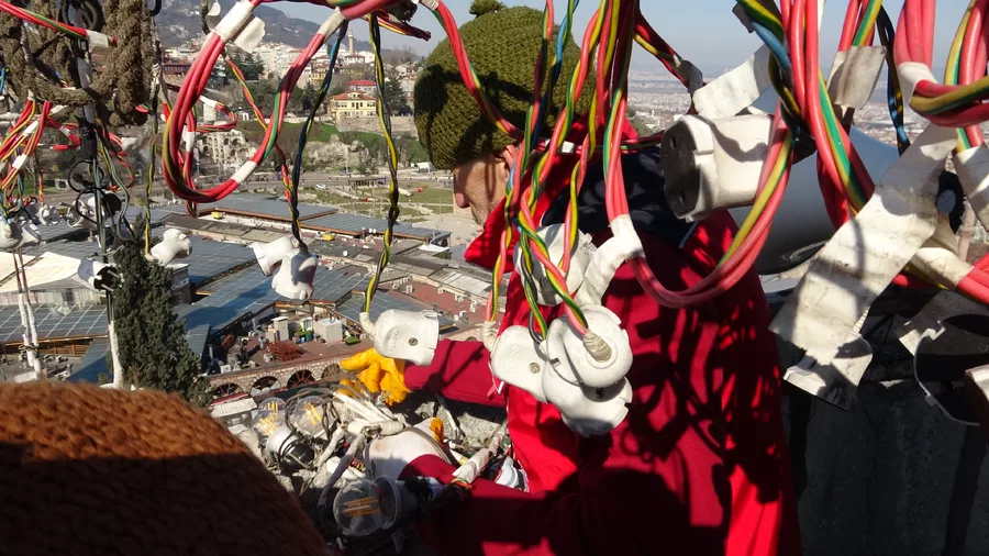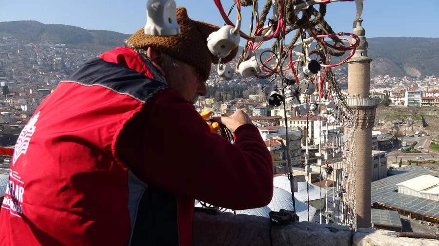 Gökyüzünde minareler arasında yazılar yazdıklarını belirten mahya ustası Kahraman Yıldız, "Şu anda Bursa'da ramazan ayının 2'nci mahyasını asmaya geldik. Mahya ramazan süsüdür. 400 yıldan fazladır Osmanlı sanatıdır, Türk icadıdır. Daha önce zeytin yağıyla yapılan kandiller, Ustamız Hacı Ali Ceyhan tarafından elektriğe dönüştürülmüştür. Biz de İstanbul, Edirne ve Bursa'daki selatin camilerde mahyaları, elektrikli sistemle mahyalarımızı takmaya devam ediyoruz" ifadelerini kullandı.