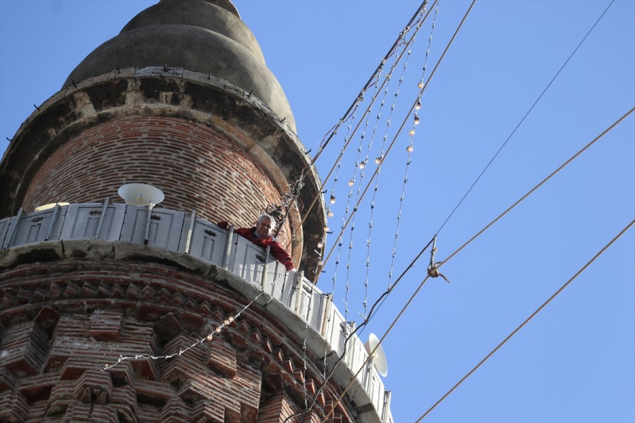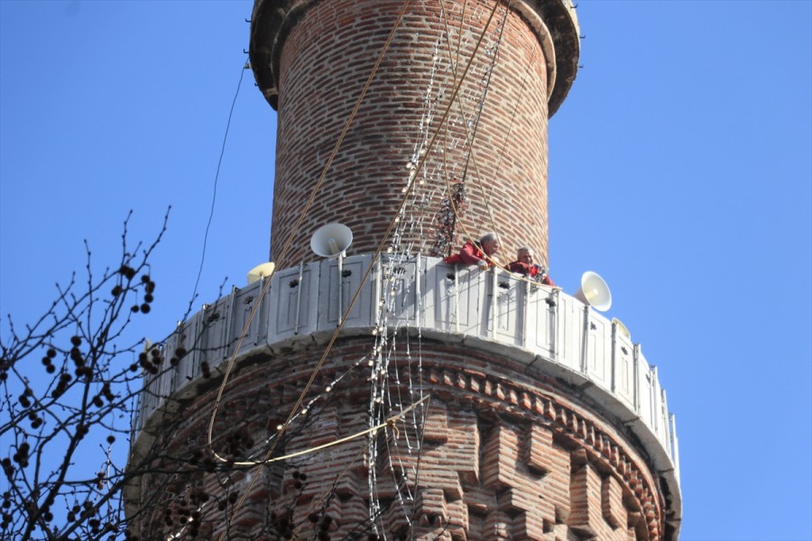 Bursa'daki tarihi Ulu Cami'nin minareleri arasına "Kul hakkından sakın" yazılı mahyanın asılmasına başlandı.