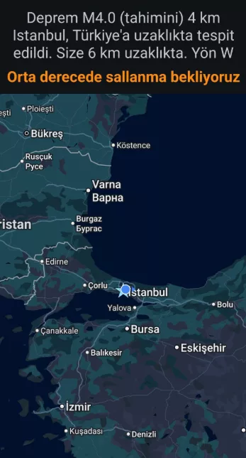 Avrupa Akdeniz Sismoloji Merkezi (EMSC) de depremin büyüklüğünü 2.6 olarak duyururken Deprem Ağı uygulamasından gelen bildirim İstanbul'da kısa süreli paniğe neden oldu.