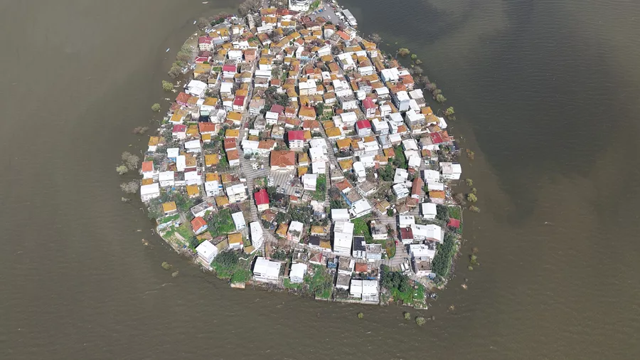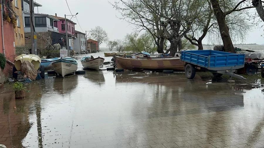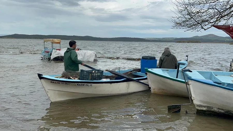 Yağışların etkisiyle su seviyesini yükselen Uluabat Gölü'nde, en derin yeri 10 metreyi geçerken, 15 yıldır görülmeyen oldu ve Gölyazı Mahallesi'nin çevresindeki yollar göl sularıyla kaplanınca kapandı.