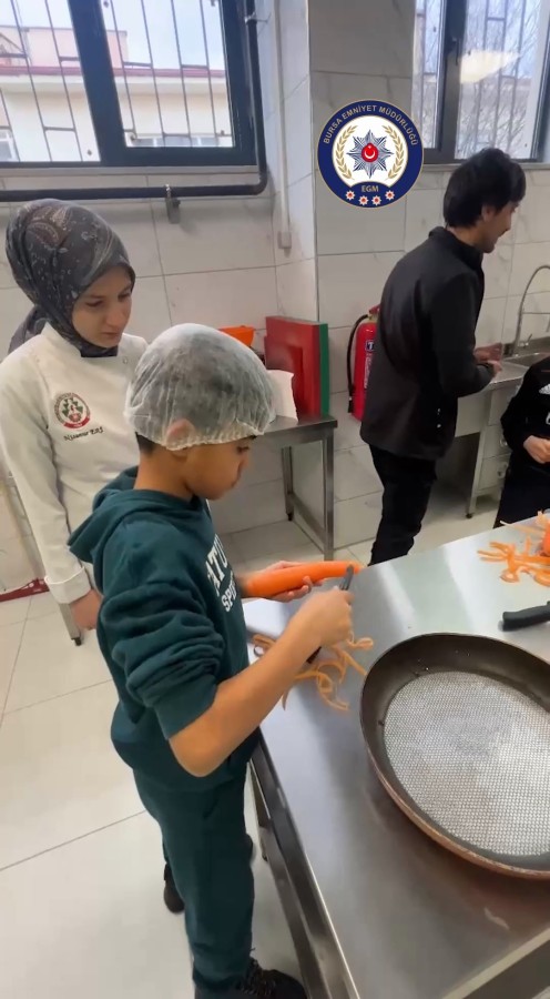 Etkinlikte, Harmancık Çok Programlı Anadolu Lisesi Aşçılık Bölümü öğrencileriyle bir araya gelen çocuklar, mutfağa girerek hep birlikte kurabiye ve mezeler hazırladı. Lezzetli dakikaların ardından düzenlenen ilçe turu ve emniyet binası tanıtımıyla çocuklar, polis abileri ve ablalarının çalışma ortamını yerinde gözlemledi.