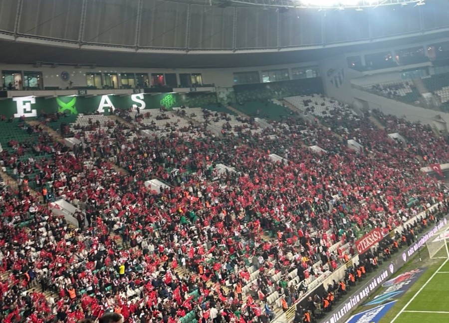 Bugün saat 20:00'da başlayacak mücadele için Bursalı taraftarlar saatler öncesinde Atatürk Spor Kompleksi Matlı Stadyumu'nda yerini aldı. Çevre illerden de Milli Takım'a destek için gelen pek çok taraftar, stadyumu adeta doldurdu. Millileri desteklemek için stada gelen taraftarlar, bayraklar ve marşlarla maç saatini coşkuyla bekledi.