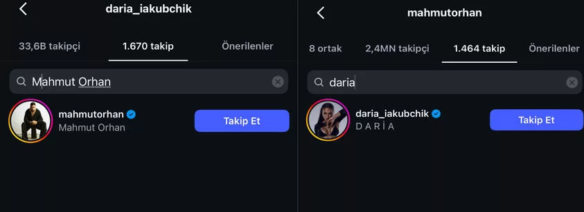 Öte yandan Orhan ile Daria Iakubchik'in sosyal medya hesaplarından birbirlerini takip etmeye başlaması da dikkatli kullanıcıların gözünden kaçmadı. Tüm bu gelişmeler, ikili arasındaki ilişki iddialarını daha da güçlendirdi.