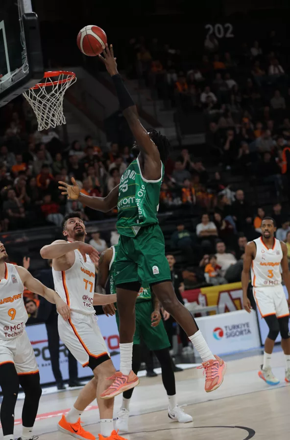 Mücadeleye istediği başlangıcı yapamayan yeşil-beyazlı ekip, ilk çeyreği 26-17 geride kapatırken, ikinci çeyrekte toparlanma sinyalleri verse de soyunma odasına 47-39'luk skorla geride girdi. Üçüncü periyotta farkı eritme çabası yeterli olmazken Bursaspor, bu bölümü de 68-57 geride tamamladı. Son çeyrekte Galatasaray karşısında zorlanan yeşil-beyazlılar, hücumda sıkıntı yaşayınca parkeden 92-70'lik mağlubiyetle ayrıldı.