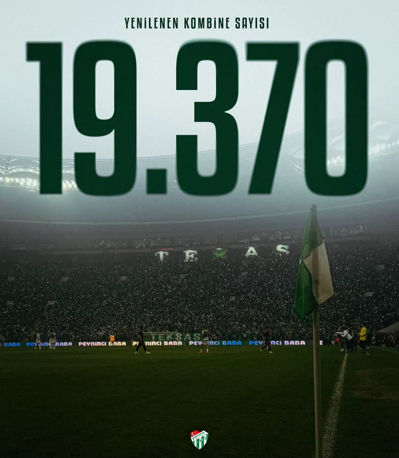 Bursaspor, 30 Mart'ta başlayan kombine yenileme sürecinin tanamlandığını belirterek verileri açıkladı. Yeşil beyazlı 19 bin 370 taraftar, yeni sezon için yerini aldı. Yenileme sürecinin bugün tamamlanmasının ardından gözler genel satışlara çevrildi.