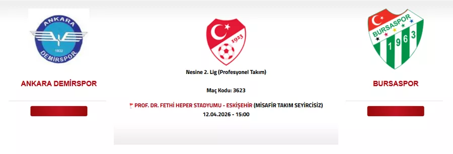 Bursaspor Başkanı Enes Çelik de geçtiğimiz günlerde yaptığı açıklamada, Ankara Demirspor yönetimiyle stadyum değişikliği konusunda görüşmeler gerçekleştirdiklerini ifade etti. 12 Nisan saat 15:00'da oynanacak karşılaşma, TFF'nin sitesinde Eskişehir Prof. Dr. Fethi Heper Stadyumu olarak gösterildi.
