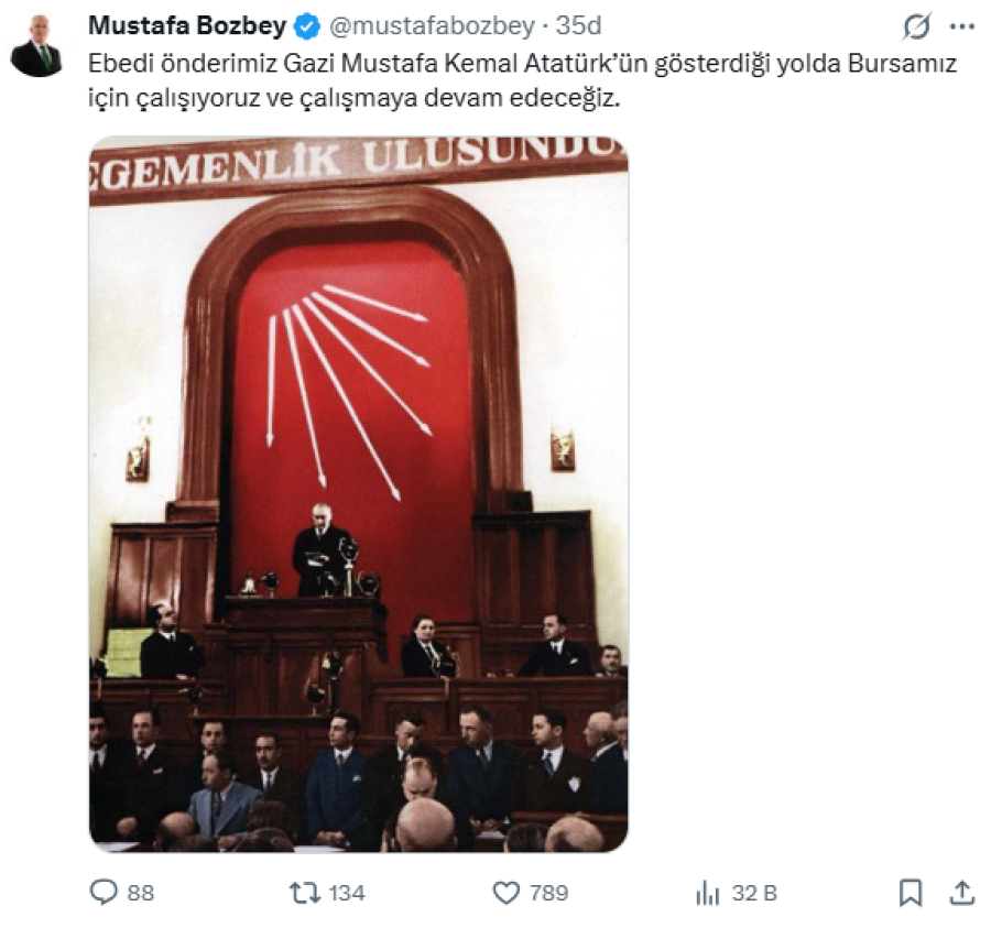 Mustafa Bozbey Cumhuriyet Halk Partili Bursa Büyükşehir Belediye Başkanımızdır! Biz dedikodularla değil, halkın iradesiyle yol alırız. Bursa'mız için Mustafa Başkanımızla birlikte sosyal ve halkçı belediyecilik anlayışımızı kararlılıkla sürdüreceğiz! sözlerini kullandı.