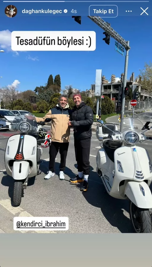 Trafikte karşılanan ikilinin o anlarını Dağhan Külegeç 'Tesadüfün böylesi' notuyla paylaştı. Sosyal medyada paylaşılan görüntüler, kısa sürede büyük ilgi gördü.