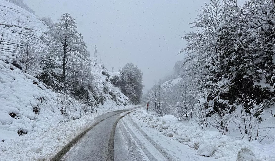 Kara yolunun Düzce kesimi Bakacak ve Karanlıkdere mevkilerinde sürücüler kar yağışı nedeniyle dikkatli ilerliyor.