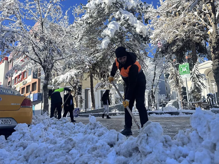 Kapanan yolları yeniden ulaşıma açmak için çaba gösteren ekipler, kent merkezinde de ana cadde ve sokaklarda kar küreme ve tuzlama çalışması yaptı, kaldırımlarda biriken karları temizledi.