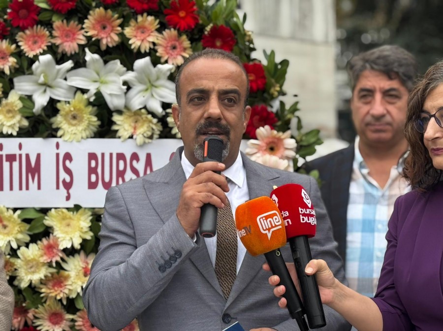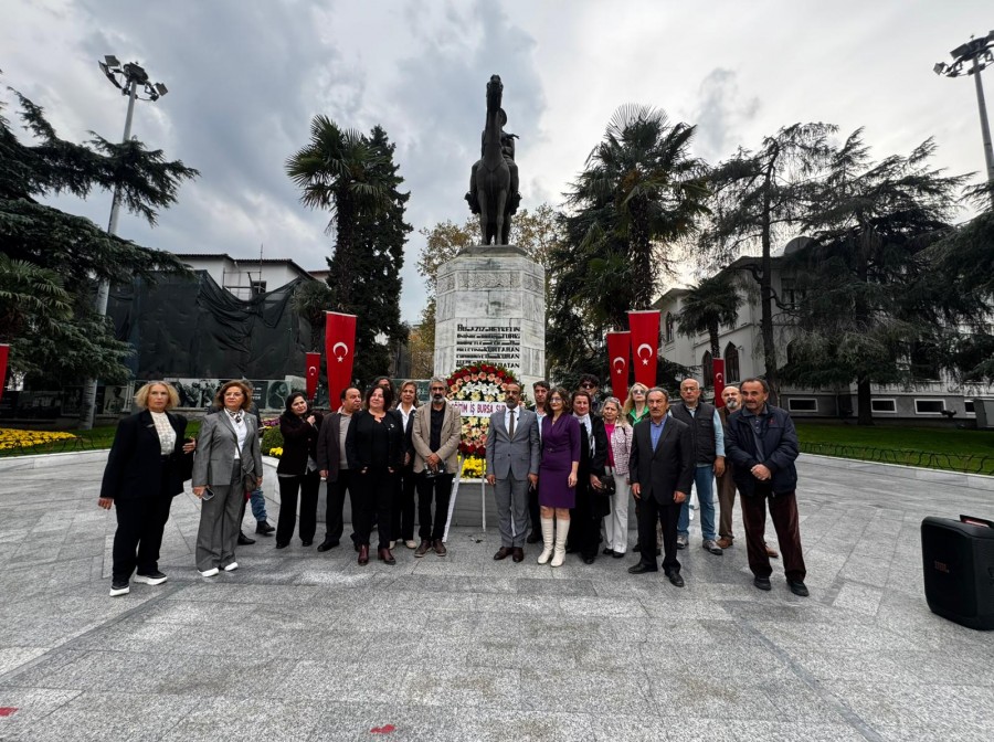 Eğitim-İş Bursa Şubesi, 24 Kasım Öğretmenler Günü'ne özel Heykel Atatürk Anıtı'na çelenk takdim etti. Çelenk takdiminin ardından Eğitim-İş Bursa Şube Başkanı Özkan Rona, basın açıklaması düzenledi.