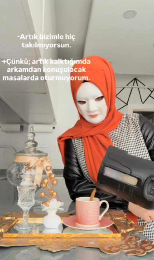Güncel, 2026.02.06 15:42Sosyal medyada içerik üreticisi bir kadın, eşinin söylemleri üzerine videolarını maske ile çekiyor.