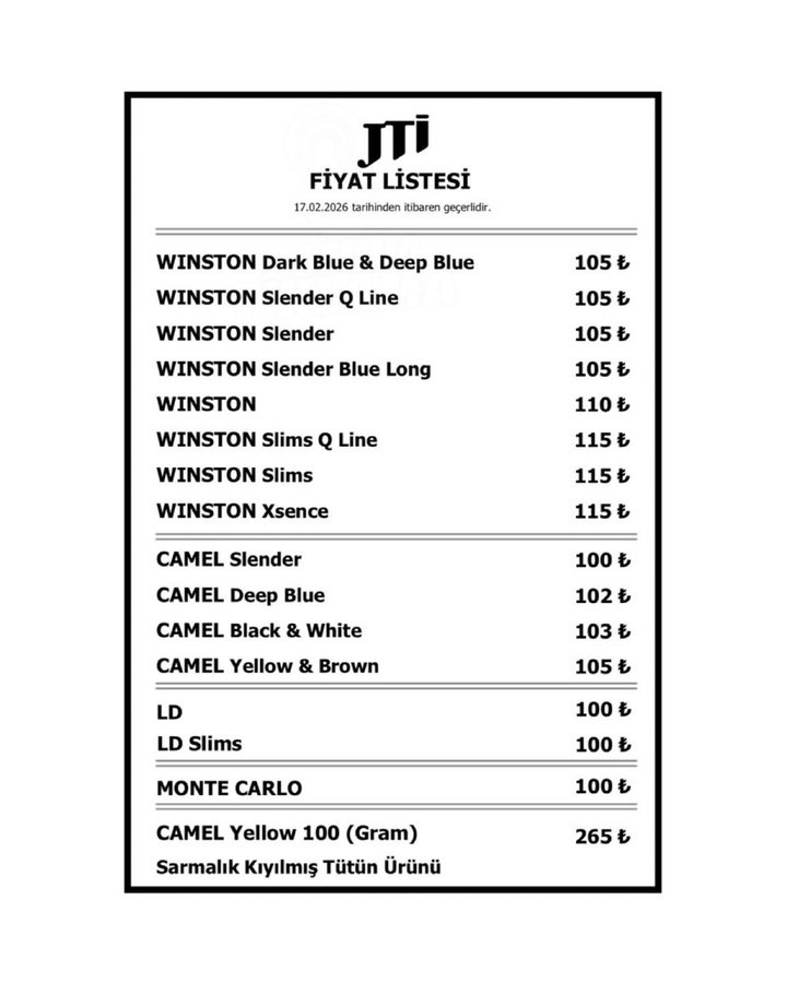 Güncel, 2026.02.16 18:09Son dakika açıklamasına göre JTİ grubundaki sigaralara yaklaşık 10 TL zam geldi.