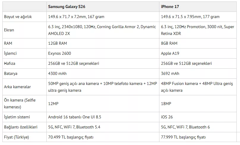 İŞTE GALAXY S26 VS IPHONE 17 KARŞILAŞTIRMASI
