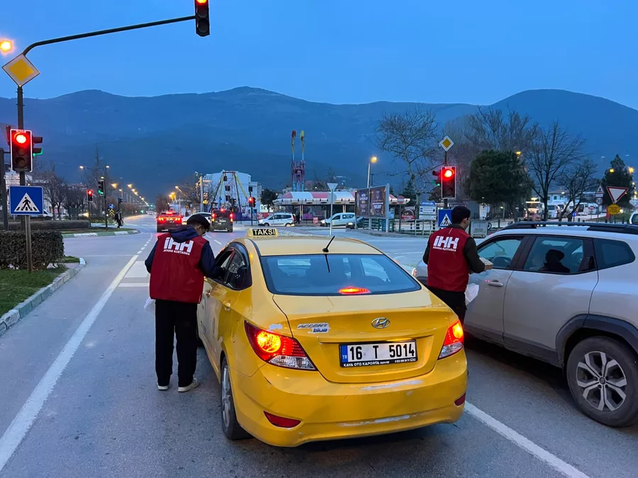 İHH ekibi, iftara yetişemeyip trafikte kalan vatandaşlara da su dağıtımı gerçekleştirdi.