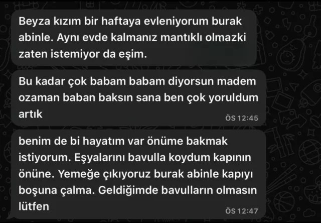Sosyal medyada hızla yayılan mesajlarda annenin kızına, "Bir haftaya Burak abinle evleniyorum. Aynı evde kalmanız mantıklı olmaz, zaten eşim de istemiyor." dediği görüldü.