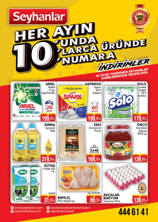 Bursa'nın en büyük zincir marketi Seyhanlar 30 şubesinde ve Seyhan Ekspres 100 şubesinde her ayın 10'inde seçili ürünlerde yüzde 10 indirime gidiyor.
