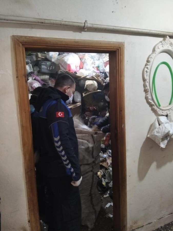 Yakutiye belediyesi zabıta ekiplerinin kontrolünde temizlik ekiplerinin çalışma yaptığı evden 25 ton çöp çıkarıldı. Apartmanda oturanlardan Dursun Ali Çelik (70), "10 senedir apartmanımızın bodrum katında oturuyor. Yalnız yaşıyor. Topladığı çöpleri eve yığmış. Biz de durumu belediyeye bildirdik. Ekipler gelip hem adamı götürdü hem de evdeki çöpleri boşalttı. Kaç senedir hiç dışarıya çıkmıyordu. Sadece pencereden kafasını dışarıya uzatıyordu. Psikolojisi çok bozuktu" diye konuştu.
