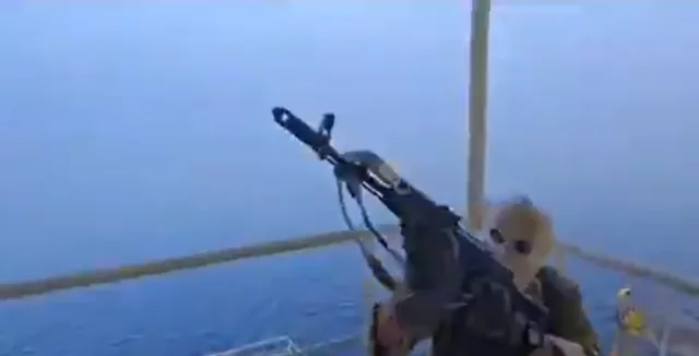 Görüntülerde, DMO güçlerinin botlarla gemilere yaklaştığı ve silahlı DMO askerlerinin gemilerin kontrolünü ele geçirdiği görüldü.