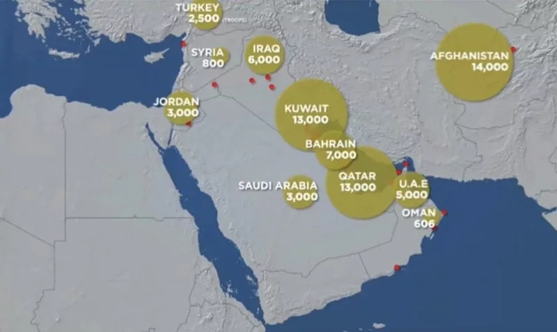ABD'nin bölgede en az 19 üssü ve yaklaşık 40 bin askeri bulunuyor.