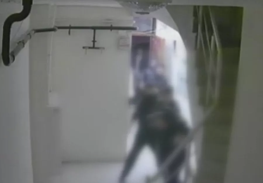 Merdivenlerden evine doğru giden şahıslardan kurtulan adamın o anları ise apartman içerisinde bulunan güvenlik kamerası ile kayda alındı.