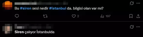 Sirenin neden çaldığına ilişkin yetkililerden henüz resmi bir açıklama yapılmadı. O anlarda sosyal medyada paylaşım yapılırken, birçok kişi sesin kaynağını merak etti.