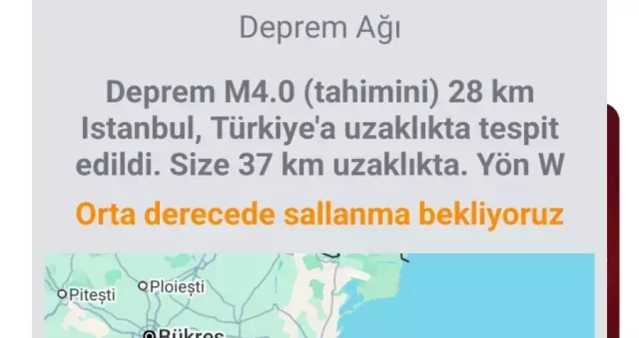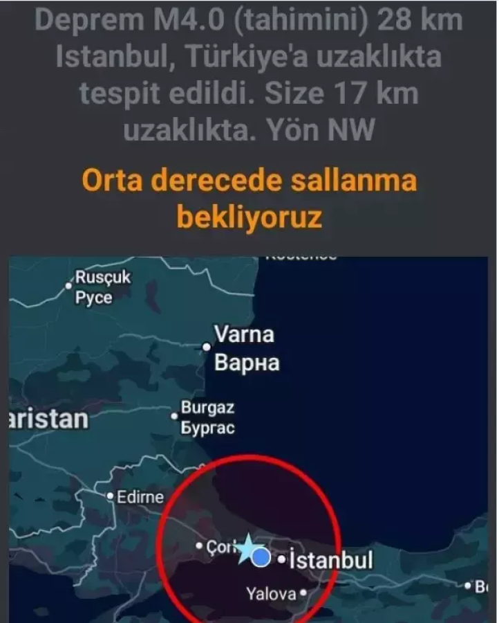 İstanbul'da gece yarısı çok sayıda cep telefonuna gelen deprem bildirimi kısa süreli panik yarattı. Birçok vatandaş uyku sırasında gelen uyarı ile irkilirken, sosyal medyada "Depremi hisseden var mı?" şeklinde paylaşımlar yaptı.