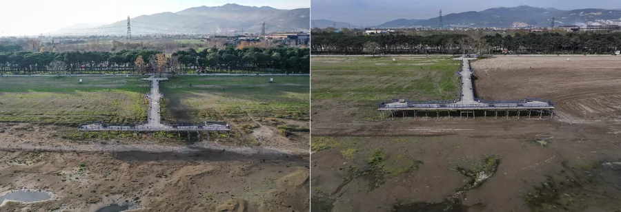 Göldeki su seviyesinin Aralık 2025 ile şimdiki dron fotoğrafları karşılaştırıldığında hemen hemen aynı olduğu gözlendi.