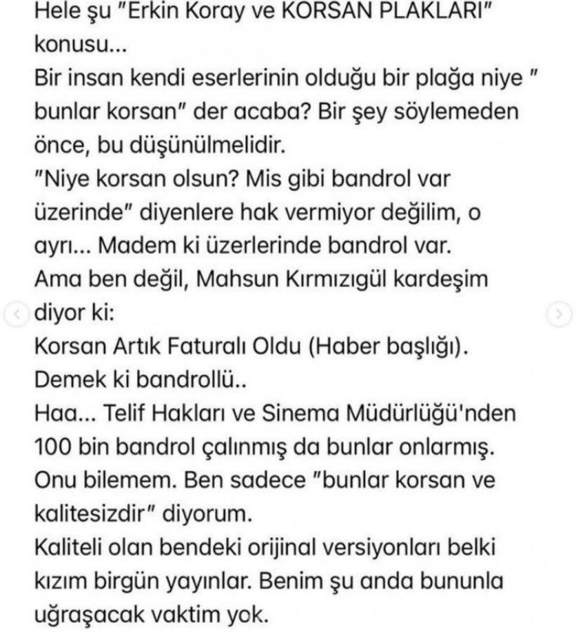 Magazin, 2023.08.08 10:27Anadolu rock müziğinin efsanevi ismi Erkin Koray, 82 yaşında hayatını kaybetti. Ölümünün ardından efsane isim anılırken müzik yazarı Kanat Atkaya değerli bir paylaşımda bulundu. Atkaya bir süre önce Erkin Koray'ın kendisine yazdığı mektubu paylaştı.